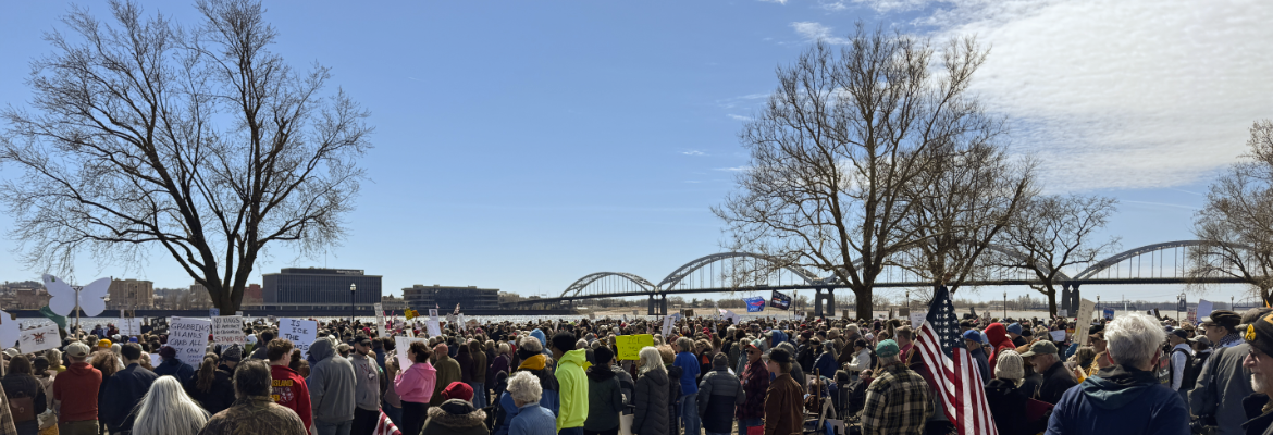 Some 4,000 Quad Citians protested President Trump and his administration actions and policies Saturday, March 28 as part of the nationwide "No Kings" march. The rally was held along the Mississippi Riverfront in Davenport.