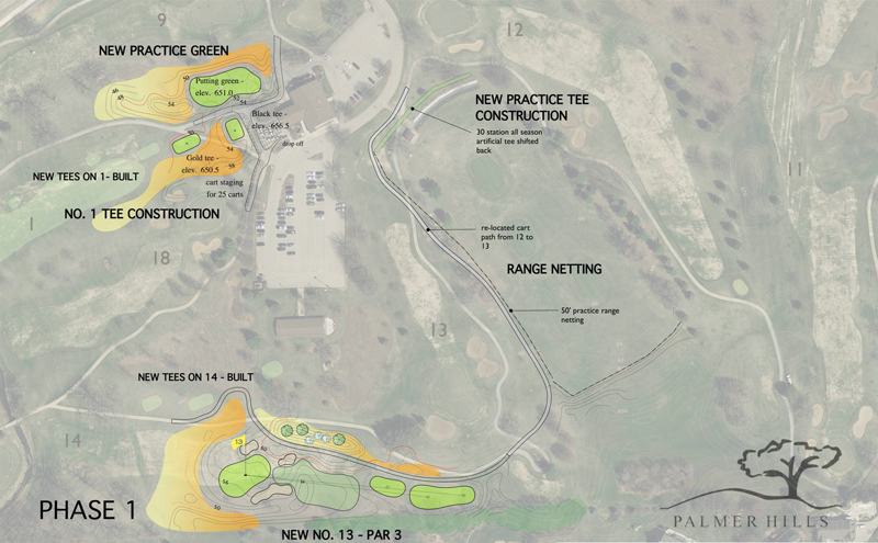 The first phase of the municipal golf course revamp costing $710,000 would include construction of a new No. 1 tee, practice green, a new hole No. 13 and practice range netting, lighting and tee area. The city council recently approved shifting $700,000 from work at Forest Grove Park to the golf course.