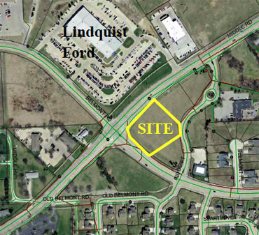 The other high traffic intersection -- Belmont and Middle Road -- would become the site of a new Deere Harvester Credit Union facility under plans submitted to the city.