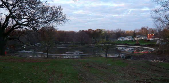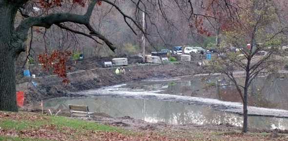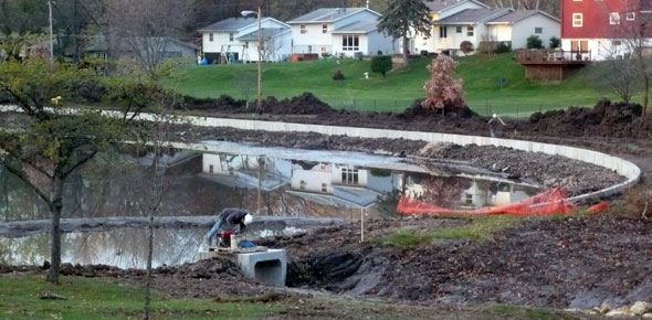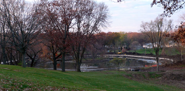 Bettendorf's Middle Park lagoon is getting a makover to remove years of silt from runoff into the shallow pond. In addition to dredging, the lagoon walls and sidewalks are being rebuilt and a series of check dams north of the lagoon have been installed to prevent silting of the pond in the future. The project is expected to cost more than $450,000.