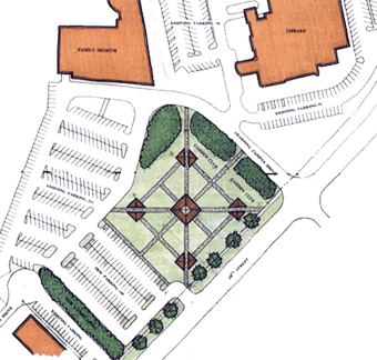 A sketch of the open area adjacent to the library and Family Museum.