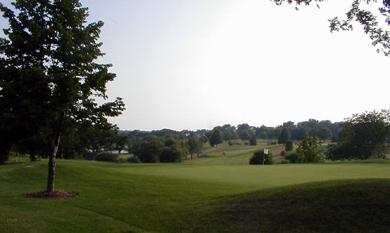 Golfers approach the 18th green at the city's Palmer Hills Golf Course on a warm summer evening.
