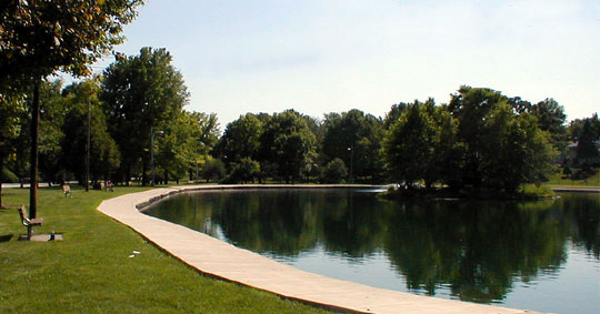 The languid Middle Park lagoon reflects the surrounding trees during the lengthening days of June.