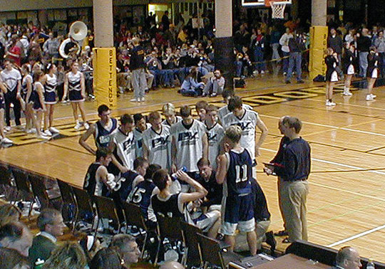 Below, PV Coach Dallas Duwa goes over strategy durring a timeout.