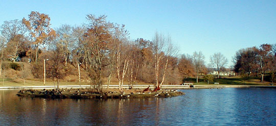 Geese enjoy a scenic rest stop at Bettendorf's Middle Park Lagoon on their journey south. The waterfowl visitors fit in well with the metal geese sculptures installed on the lagoon island.
