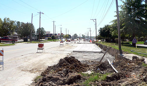 Devils Glen Road between Tanglefoot Lane and Middle Road has become a jungle of construction signs and equipment as crews widen the heavily used street to accommodate new turn lanes onto Belmont and Middle Roads. The project was described by city Public Works Director Wally Mook as "building a ship in a bottle" because of the limited space for equipment and the need to keep the road open during construction. The construction of the new Hy-Vee Food Store and revamping of the store parking lot adds to the construction confusion for motorists in the area.