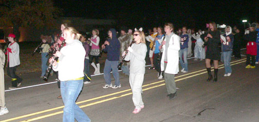 The trombone section leads the BHS Marching Band in the annual Bettendorf Halloween Parade Saturday night (10/30). Band members dressed in their Halloween costumes for the parade, which drew a sizeable number of political candidates as the November 7 election approaches.