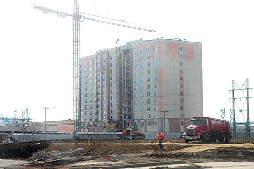 Site work is under way for the new city Special Events Center south of State Street at 20th Street. The $17-million center will be more than 50,000 square feet and connect to the new Isle of Capri hotel, shown in the background, via a skyway bridge over the railroad tracks. Under the proposed agreement with the Isle, the city and Isle will split the cost of building the facility and the Isle will manage the facility, absorbing any operating losses. The city will have three "free" days of usage each year, under the proposed agreement. The city council earlier this month delayed action on a downtown streetscaping project until the agreement with the Isle is finalized. Click on the "Read More" link for additional photos.