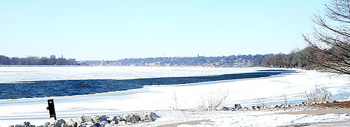 Ducks hunker down in open water along Leach Park, Bettendorf, to try to avoid the strong frigid winds blowing along the Mississippi River shoreline. Temperatures fell below zero for the first time this winter Friday (Feb. 2) and are expected to remain around for several days.