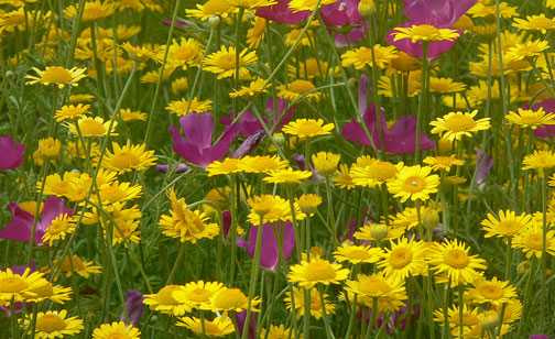 The Centennial Garden in Middle Park (off 23rd Street) provides its own showy "fireworks" of purple, yellow and orange colors. Area gardens and farm fields reflect the ample rain and sunshine so far this growing season. For additional photos of the colorful Centennial Garden, click on the "Read More" link below.