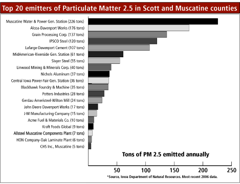 The taxpayer money from the cities of Bettendorf, Davenport and Muscatine, Scott County and the Iowa Department of Economic Development is being used to help fund a study by noted University of Iowa researchers on "Understanding Iowa's Particulate Matter Episodes." The private funders of the $40,000 study include Alcoa, Blackhawk Foundry, Grain Processing Corporation, Muscatine Power and Water and IPSCO Steel.